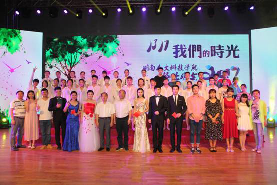 Afterwards the graduation evening party began. The unique sand painting video looked back on the classic scenes of campus life; the original dance,—Those Things Happened in Dormitories, and Love Exists Forever showed that graduates felt reluctant to leave their school; the song and dance drama The Story of Time and Pretty Huadan ( a female role in traditional opera) reappeared graduates' scenes of campus life; in the interactive activity of teachers and students, they embraced and said farewell to each other;The adapted song The days in HUHST which was sung by Ultraviolet Light Music Band brought the atmosphere to a climax. In the end, the evening party came to a close in the dance Don't Say Goodbye which was performed by the graduates from School of Music and Dance.