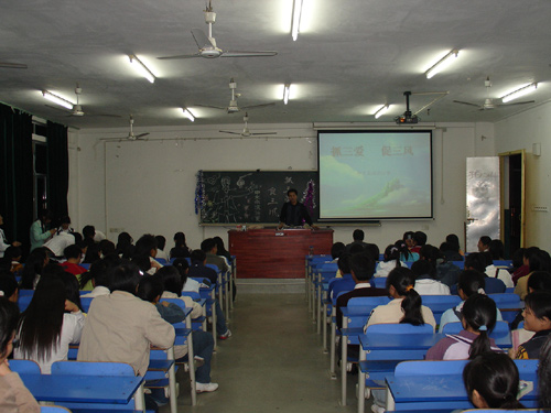 2007年10月16日晚,中文系抓“三爱”促“三风”演讲比赛在5栋211教室举行。出席本次活动的评委有系党总支书记李夫泽教授,系副主任黄立平教授,辅导员牛津老师,纪忠璇老师,毛永莉老师。