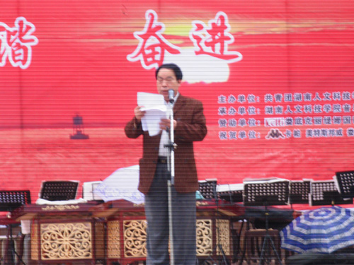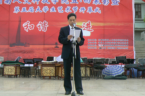 5月4日下午3:00,学院领导与在校的青年大学生欢聚在海园广场,以“五·四表彰暨第五届大学生艺术节活动”为载体,共同度过了第59个五·四青年节。活动由院团委主办,音乐系团总支承办。院党委书记黄懿斌同志,党委副书记、院长姜正国同志,党委副书记、副院长郭军同志,党委委员、纪委书记李尚益同志,党委委员、工会主席邓和秋同志,党委委员、党办院办主任李高海同志,院长助理刘铁铭、蒋建初同志,组织部、院团委、学生处、宣传部、武保处及各系领导出席了此次盛典。