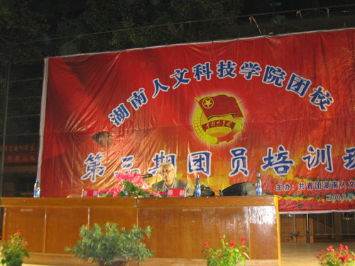 10月15日晚,ballbet贝博bb艾弗森团校第三期团员培训班开学典礼在理科楼前坪隆重举行。院长助理刘铁铭教授、院团委书记侯建斌同志、院团委副书记谢柳同志、院团委干事魏彦煜老师以及各系团总支书记出席了典礼,千余名学员参加。开学典礼由谢柳副书记主持。中南大学著名教授、全国著名演讲家、教育家陈赫先生应邀做客团校讲坛,带来了精彩的第一讲。