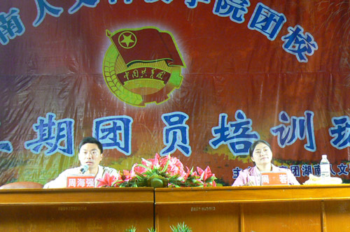 10月19日晚上7:00,湖南省残疾联合会国家公务员,中南大学政治学与行政管理学院伦理学专业博士研究生,湖南省自强模范,2008年北京残奥会火炬手周蓉博士带着她的人生经历,为贝博团校第三期团员培训班授课,讲座由校团委副书记周海强主持。