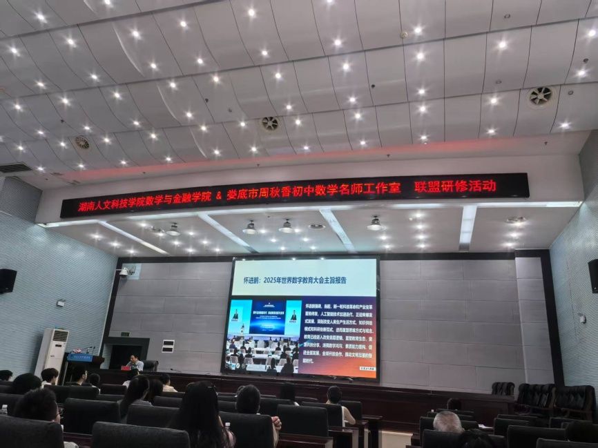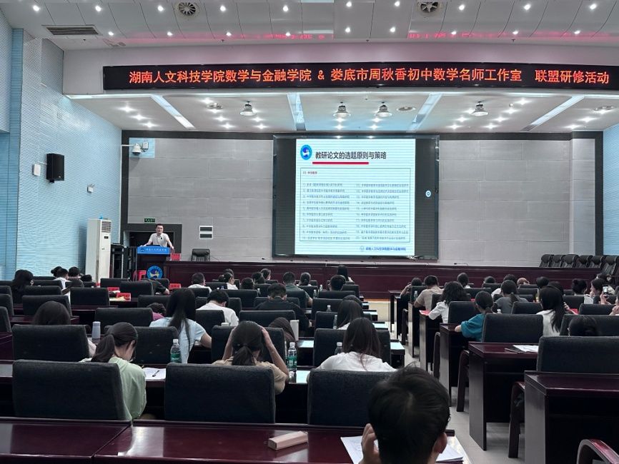 29日上午,活动开幕式在学校图书馆二报告厅举行,学校教务处副处长白婧,数学与金融学院党总支书记陈国华、院长李军成、副院长龙志文,新化县教育科学研究所教研员邹泰山,以及娄底市周秋香初中数学名师工作室全体成员、数学师范生代表参加,数学与金融学院副院长罗志军主持。陈国华在致辞中向工作室成员表示欢迎,希望参与活动的学生珍惜难得的学习机会,汲取知识养分,提升专业素养。白婧对数学与金融学院在UGS协同育人领域的创新实践给予肯定,她表示,此次研修活动有望成为学校师范生培养的典范,为师范教育改革与发展提供宝贵经验。