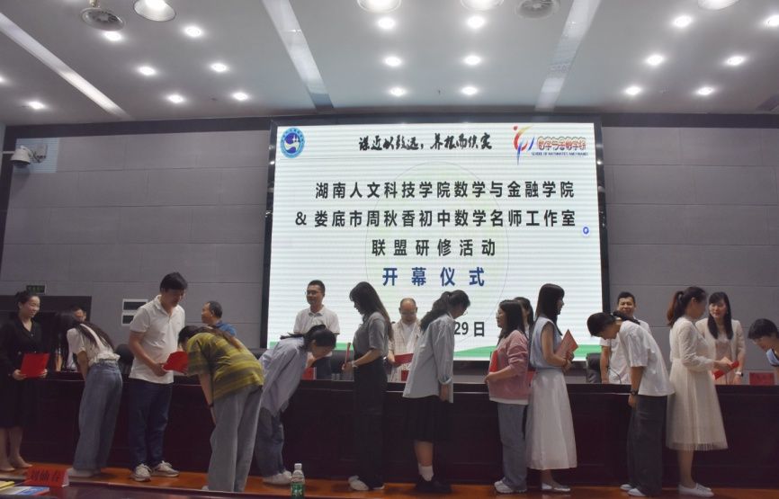 开幕式上,还举行了“师徒结对”仪式。娄底市周秋香初中数学名师工作室成员与数学与应用数学专业2022级师范生正式结成师徒对子。未来,他们将以“传、帮、带”的传统模式为纽带,紧密合作,将初中数学教育教学理论与实践深度融合,助力师范生们在专业成长的道路上稳步前行,为培养更多优秀的数学教育人才奠定坚实基础。