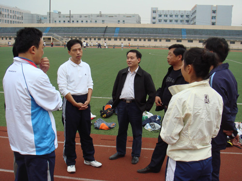 10月21日下午,院长助理刘铁铭同志、学生处副处长刘铁峰同志在体育系领导彭健民、柳佑华等同志的陪同下,慰问了正在田径场上刻苦训练的运动员,并做了赛前动员。