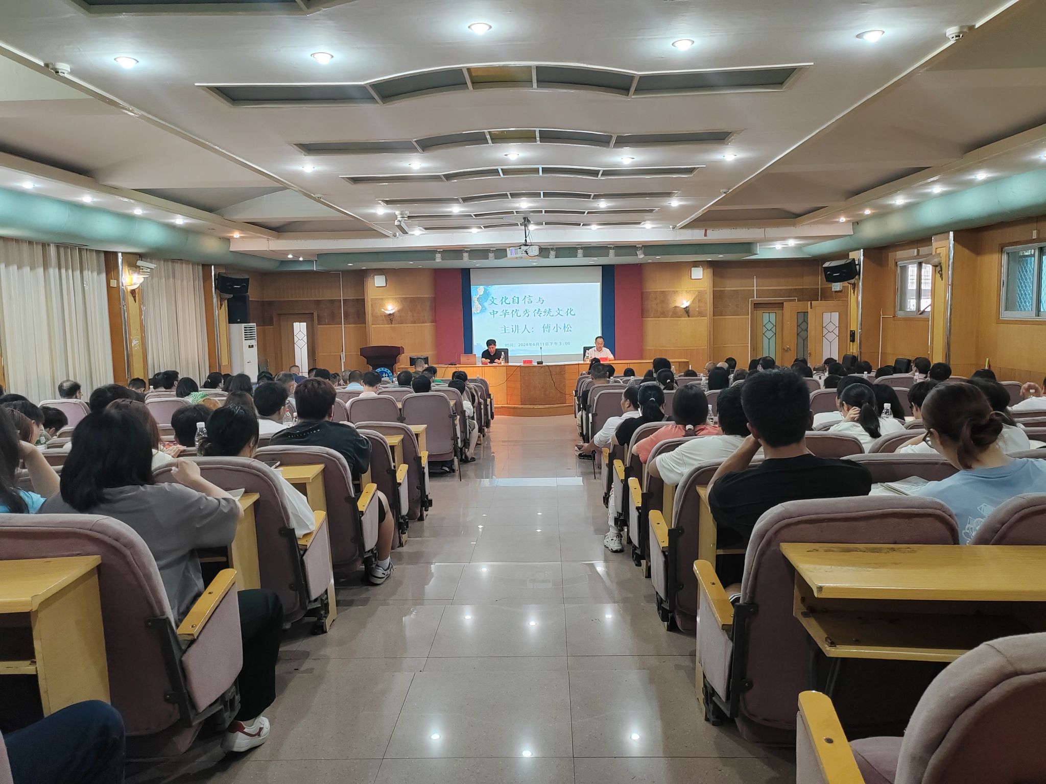6月11日下午,娄底市政协副主席、民盟娄底市委主委、市文化旅游广电体育局副局长傅小松受邀在养根楼报告厅开展《文化自信与中华优秀传统文化》专题讲座。讲座由学校党委副书记朱强教授主持,信息学院全体教职工、学生代表参加讲座。