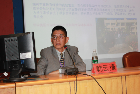 韩教授介绍了菲律宾国家概况、历史沿革、风土人情,较为全面的分析了欧美教育与菲律宾教育各自的优劣势,为我们了解国外的高等教育现状以及出国深造上了一场生动的讲座。(体育学院供稿)