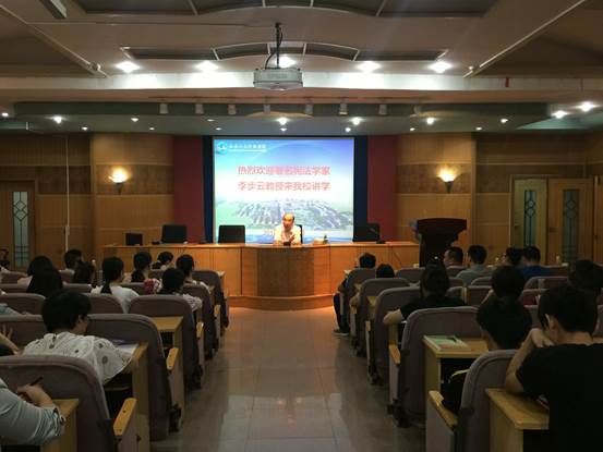 李步云教授系娄底人士,回到故乡,李老感慨万千。他饱含深情地与师生们分享了自己在娄底成长的经历,并以个人的人生经历告诫师生应该如何治学和作研究。李老用“求实”、“创新”、“严谨”、“宽容”“八字经”概括了自己的治学理念。李老鼓励同学们要学会多读、多看、多思、多问和多写,殷切期望同学们好好学习,不要辜负这个伟大的时代。副校长周发明教授高度评价了李老的“治学八字经”,并希望师生们多观察、多创新,推动学术研究,同时,还鼓励学生们牢牢掌握“八字经”,将其运用到学习和生活中去。(法学院、科研处供稿)