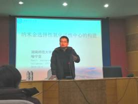 12月4日,湖南师范大学博士生导师、湖南省大学生课外化学化工类创新作品竞赛发起人之一喻宁亚教授应邀在贝博养根楼报告厅举行催化材料-纳米金选择性氧化活性中心的构建和化学学科竞赛讲座,本场讲座由化学教研室主任彭伟才博士主持,材环学院院长杨道武、副书记李星奇、副院长谭峰亮、吴超富博士、宁旭涛博士等领导和老师参加。