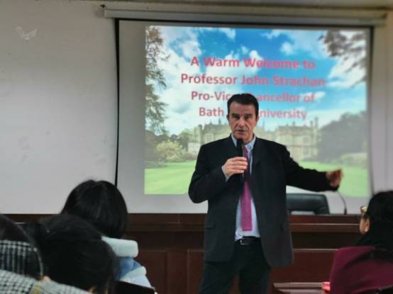 12月16日,英国巴斯斯巴大学副校长、牛津大学文学博士John Strachan 教授应邀在贝博图书馆415学术报告厅举行“英国文学与研究”学术讲座,来自各个学院的师生到场聆听,现场座无虚席。