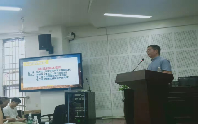 6月4日下午,由贝博科研处组织、法学院承办的“人文科技大讲坛”在致远楼202教室举行。本次讲坛的主题是“法科生的基本素养四人谈”,华东师范大学法学院院长、教育部“长江学者”特聘教授张志铭主讲,娄星区人民法院院长郭超群、华东师范大学法学院院长助理于浩博士、中国社会科学院法学研究所李广德博士为与谈人。法学院院长朱耀斌主持讲座,副校长朱强出席并致辞,科研处副处长周卫军、法学院部分师生参加。