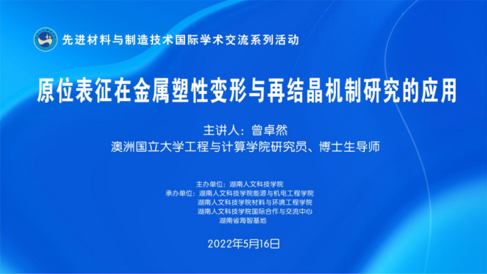 5月16日晚,应贝博“湖南省海智基地”邀请,澳洲国立大学工程与计算学院研究院曾卓然博士做了题为《原为表征在金属塑性变形与再结晶机制研究的应用》的线上学术报告。贝博组织能源与机电工程学院、材料与环境工程学院、国际合作与交流中心部分师生在图书馆二会议室参加讲座。副校长陈志国教授主持。