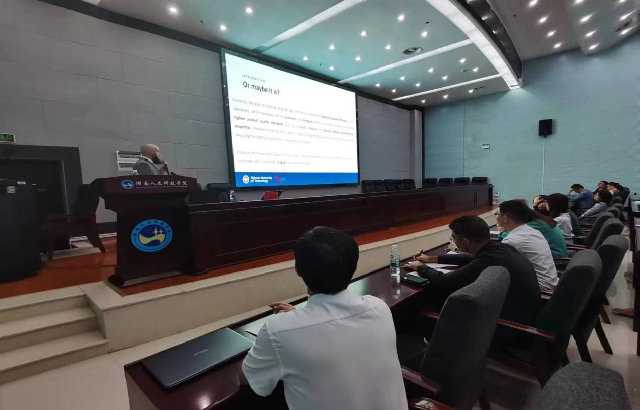 在图书馆二会议室,西里西亚技术大学化学学院Marcin教授受邀主讲海外学者讲坛之“化学与材料学术前沿”学术讲座,作题为《Stimuli-responsive polymers in chemical engineering》的学术报告。材料与环境工程学院党总支书记谭峰亮博士及相关领域教师代表,化学专业2021级、2022级全体学生参加讲座,院长文瑾主持。