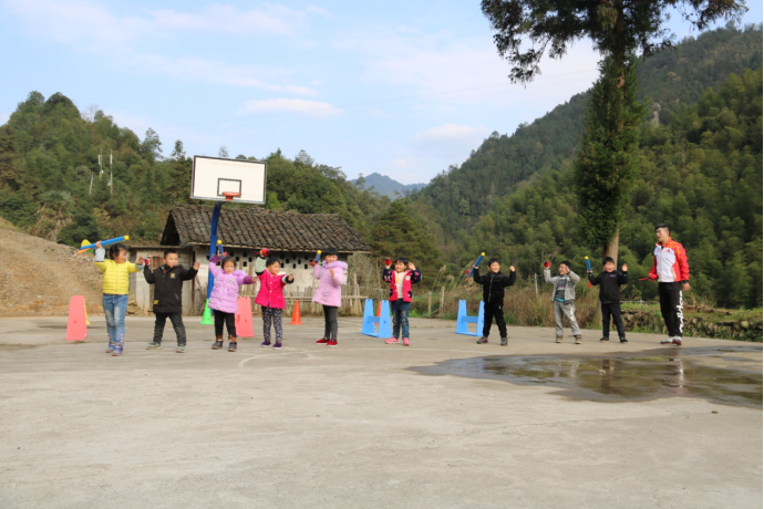天高云淡,群山如黛。娄底市新化县奉家镇横江教学点简陋的水泥坪操场上传来阵阵欢声笑语—— 一堂专业而又生动的趣味体育课激起了在场每名学生的兴趣,这个横江教学点一共有学前班和一二年级的孩子共20名,都在一间简陋的房子里上课,整个教学点只有一位老师。