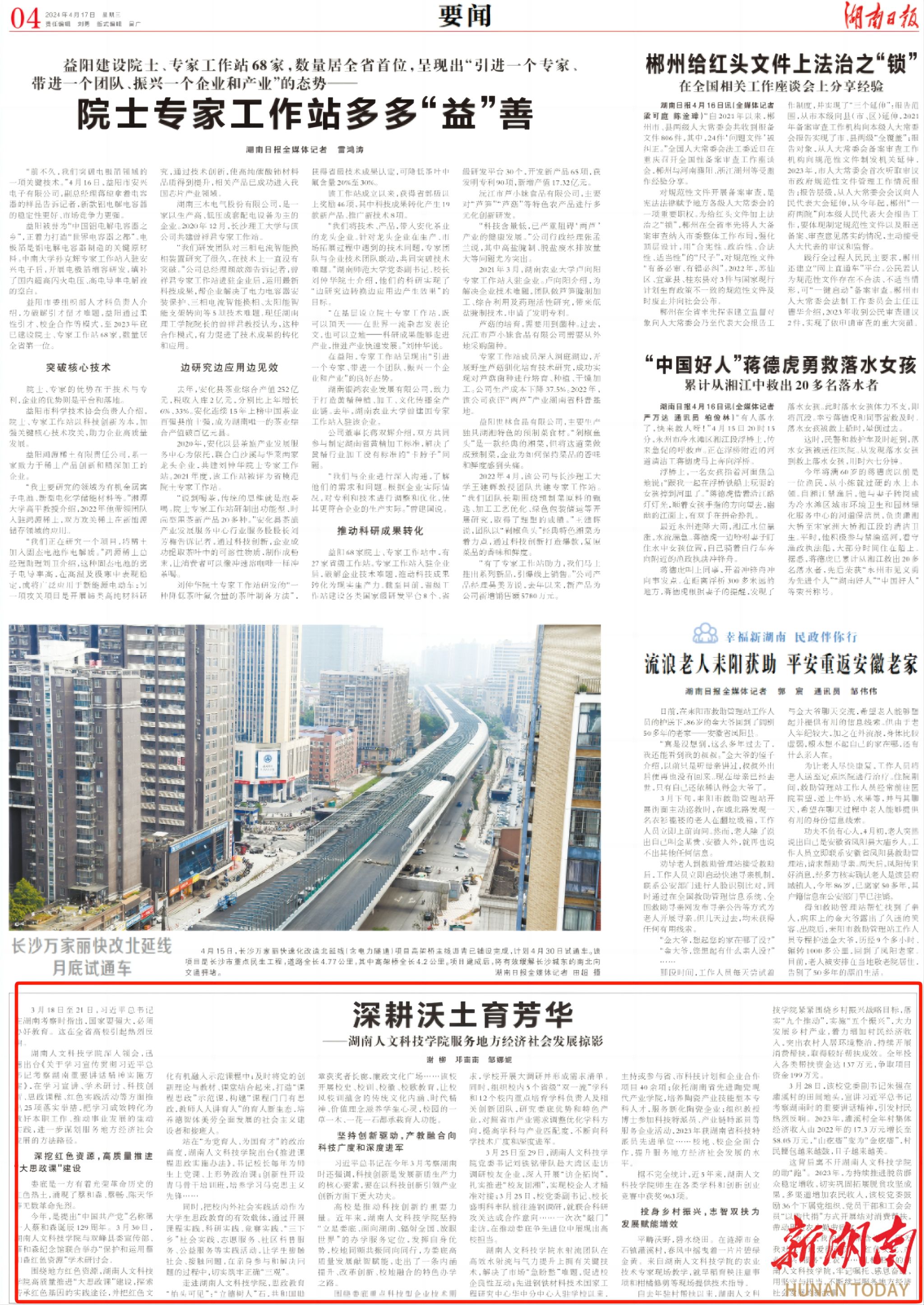 【编者按】习近平总书记考察湖南重要讲话精神催人奋进,贝博迅速行动,学习传达贯彻落实讲话精神。2024年4月17日《湖南日报》第4版(要闻)刊发贝博在习近平总书记考察湖南重要讲话精神指引下服务地方经济社会的成果报道,全文如下。
