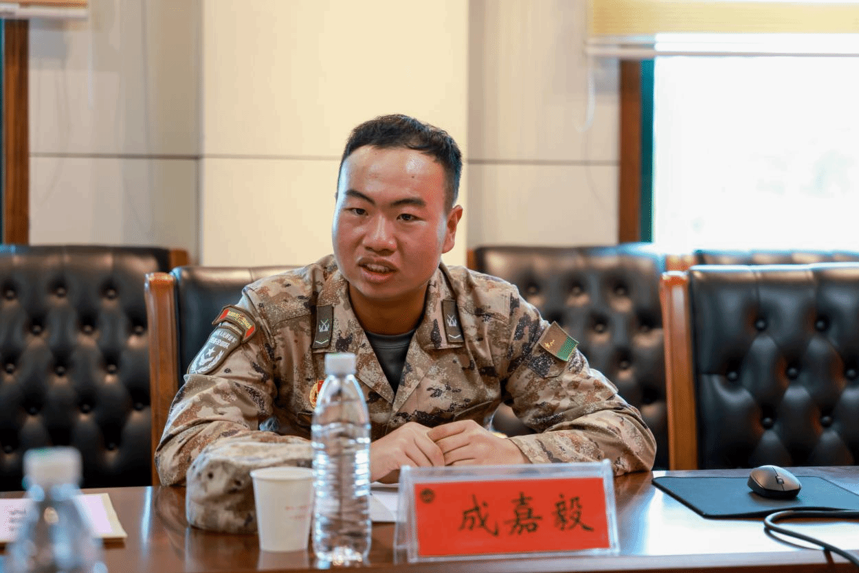 成嘉毅父亲由衷感谢部队的培养与学校的教育,表示参加阅兵是孩子成长中的宝贵经历,并鼓励他永怀感恩之心、砥砺前行,不负重托、回报社会。成嘉毅分享了自己作为一名退伍重返校园的大学生,再次响应召唤、入选国家重大任务的心路历程。在备战阅兵过程中,他始终心怀为校争光、为家乡添彩、为强国奋斗的信念,以顽强意志面对训练挑战与身体极限,最终圆满完成任务。
