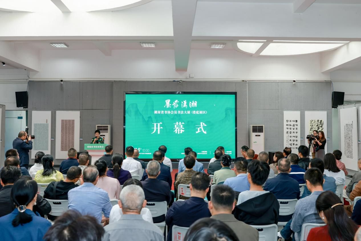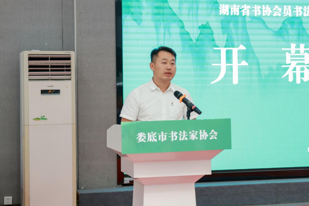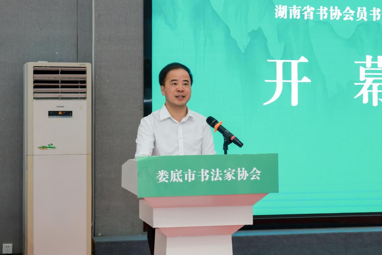 莫小佳作讲话。他表示,娄底市委、市政府高度重视文艺事业发展。希望全市广大书法工作者要以此次展览为新起点,始终坚守中华文化立场,自觉担当文化使命,努力创作出更多精品力作,用笔墨讲好娄底故事,用艺术赋能社会发展,为全面提升娄底文化软实力和影响力作出新的更大贡献。随后,他宣布展览开幕。