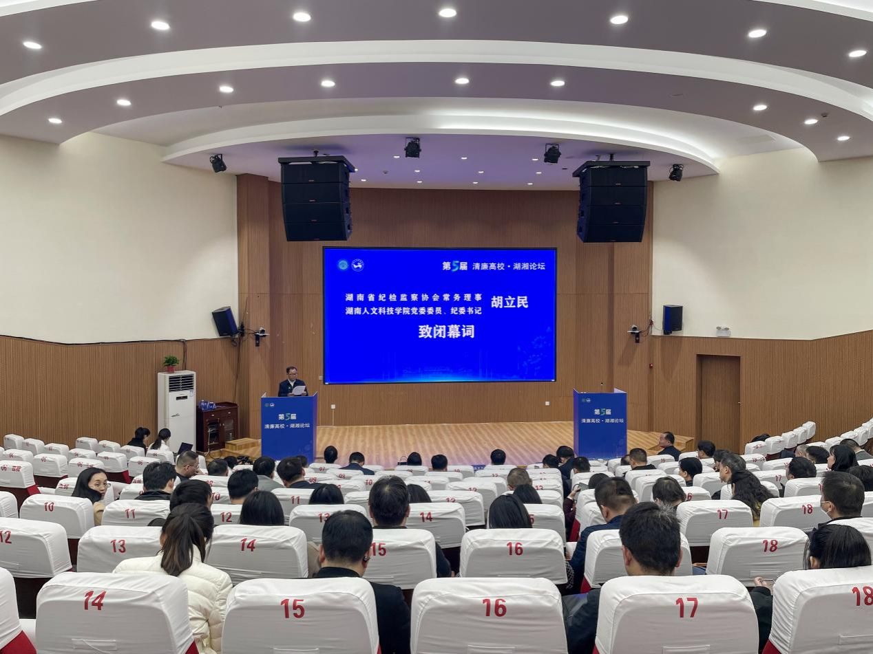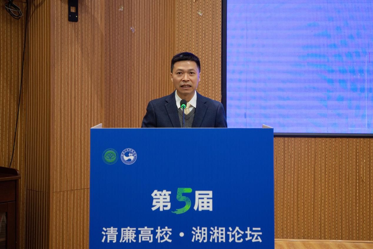 12月5日,由湖南省纪检监察协会主办、贝博承办的第五届“清廉高校·湖湘论坛”在学校匠成楼举行。省纪委监委第九监督检查室副主任李慧平、省委教育工委委员、省教育厅党组成员、省纪委监委驻省教育厅纪检监察组组长曾市南,省纪检监察协会副会长、省委党校(湖南行政学院)副校长邓联荣,娄底市纪委常委、市监委委员吴宇峰,贝博党委委员、副校长刘铁峰,校党委委员、纪委书记,湖南省纪检监察协会常务理事胡立民出席论坛。开幕式由校党委副书记朱强主持。