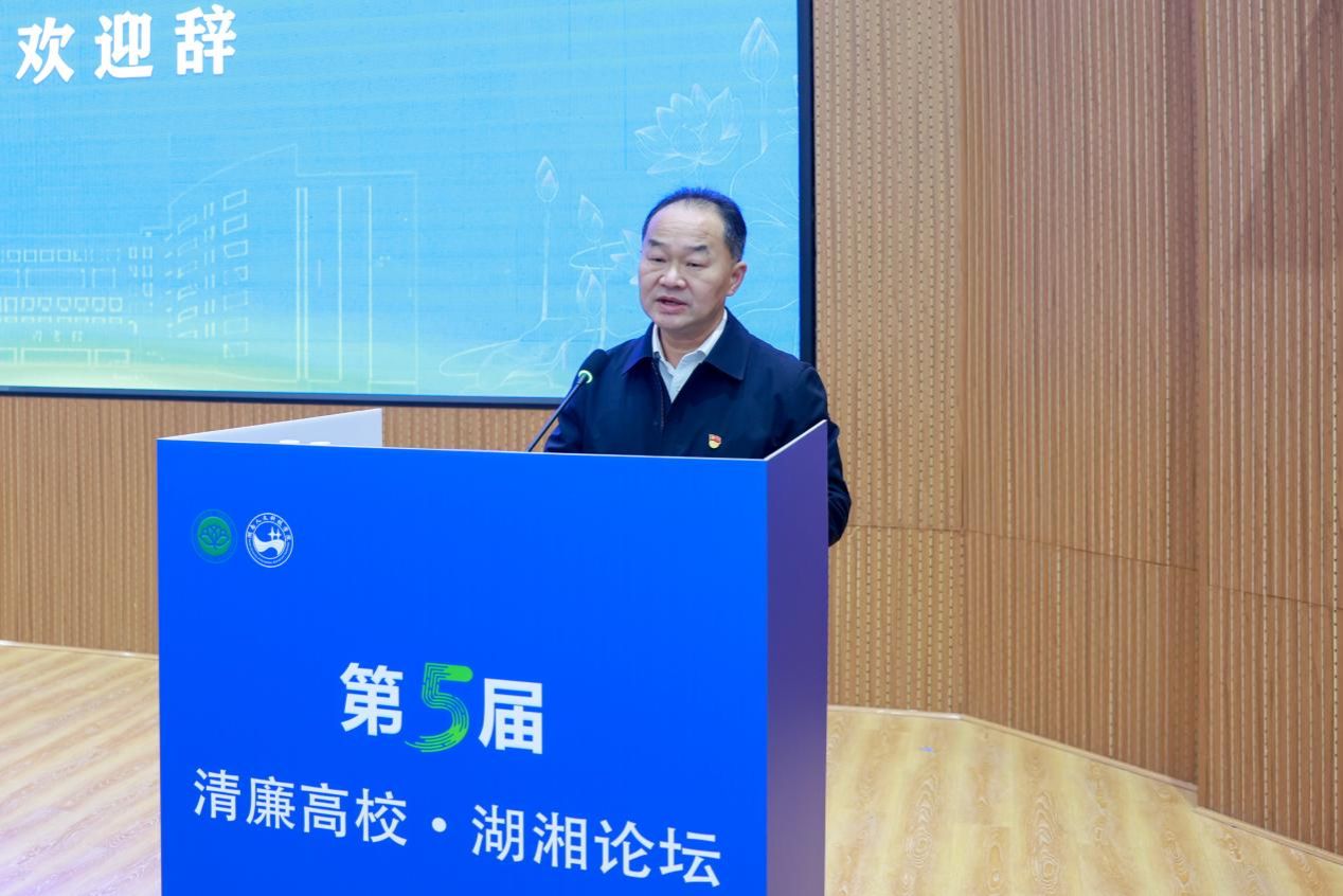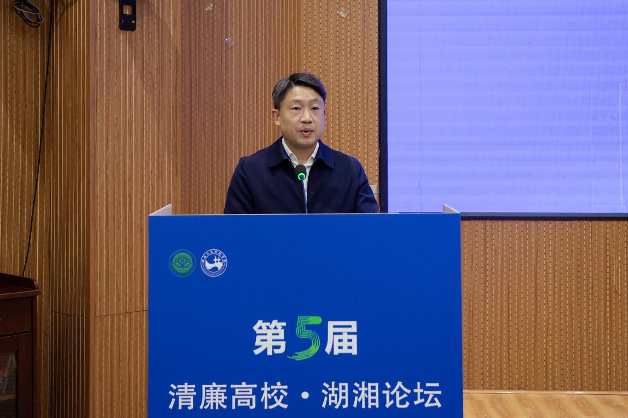 刘铁峰致辞。他代表学校向与会领导和嘉宾表示热烈欢迎与诚挚感谢。他简要介绍了学校的发展情况和清廉建设实践。他表示,本次论坛对推动我省清廉高校建设向纵深发展意义重大,期待通过论坛凝聚智慧,为清廉高校建设和教育强省营造更加风清气正的政治生态和育人环境。