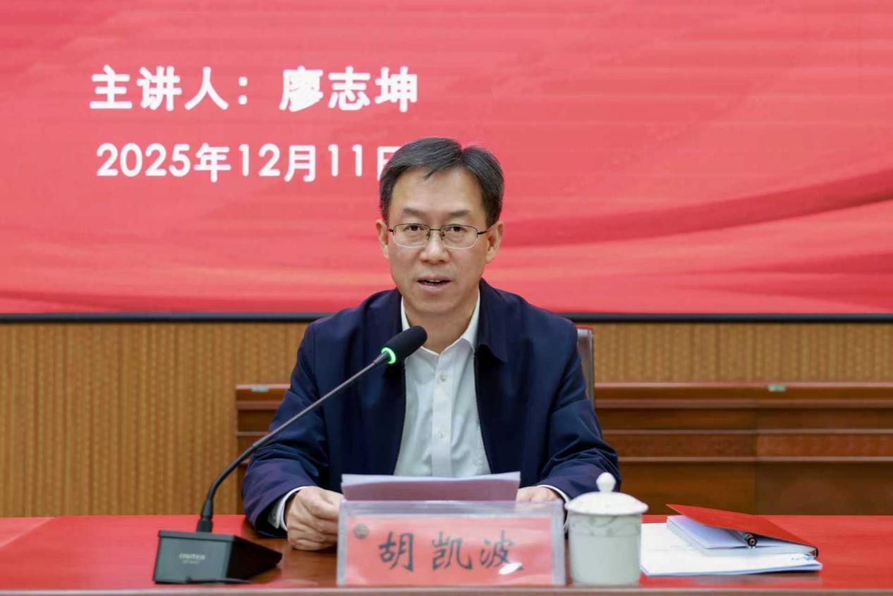 12月11日,贝博学习贯彻党的二十届四中全会精神宣讲会在匠成楼报告厅举行。省委宣讲团成员、湖南工商大学党委书记廖志坤教授应邀来校作专题宣讲,校党委书记胡凯波主持。