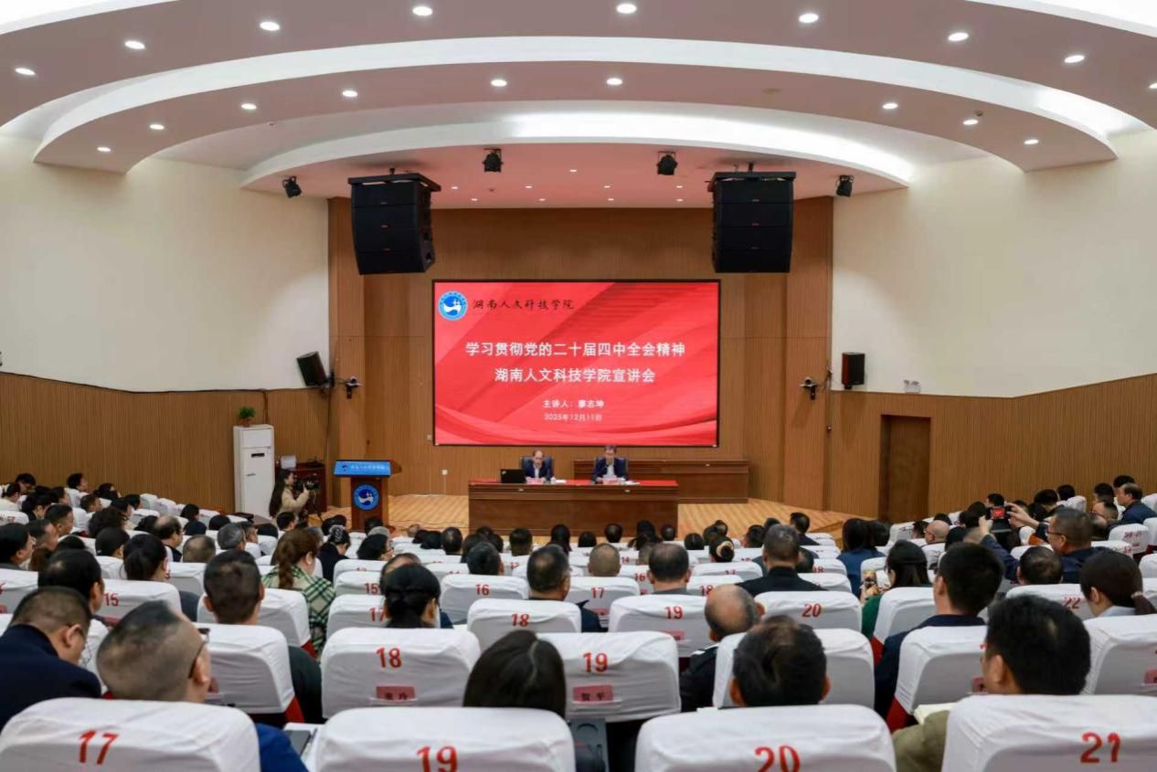 胡凯波在总结讲话中指出,深入学习宣传贯彻党的二十届四中全会精神是学校当前和今后一个时期的重大政治任务。他对全校深入学习贯彻党的二十届四中全会精神提出四点要求:一是要坚持把学习贯彻全会精神与落实立德树人根本任务紧密结合,全面贯彻党的教育方针,深化教育教学改革,着力培养时代新人。二是要围绕国家重大战略、湖南三高四新美好蓝图、区域经济社会发展需要,科学编制学校“十五五”规划,不断提升科研创新和服务社会的能力。三是要坚持把学习贯彻全会精神与推进学校治理体系和治理能力现代化紧密结合,深化内部管理体制改革,提升办学治校水平。四是要以学习贯彻全会精神为动力,提振干事创业的精气神,攻坚克难,锐意进取,切实把学习成果转化为推动学校高质量发展的实际成效,为建设特色鲜明的高水平应用型学院而努力奋斗。