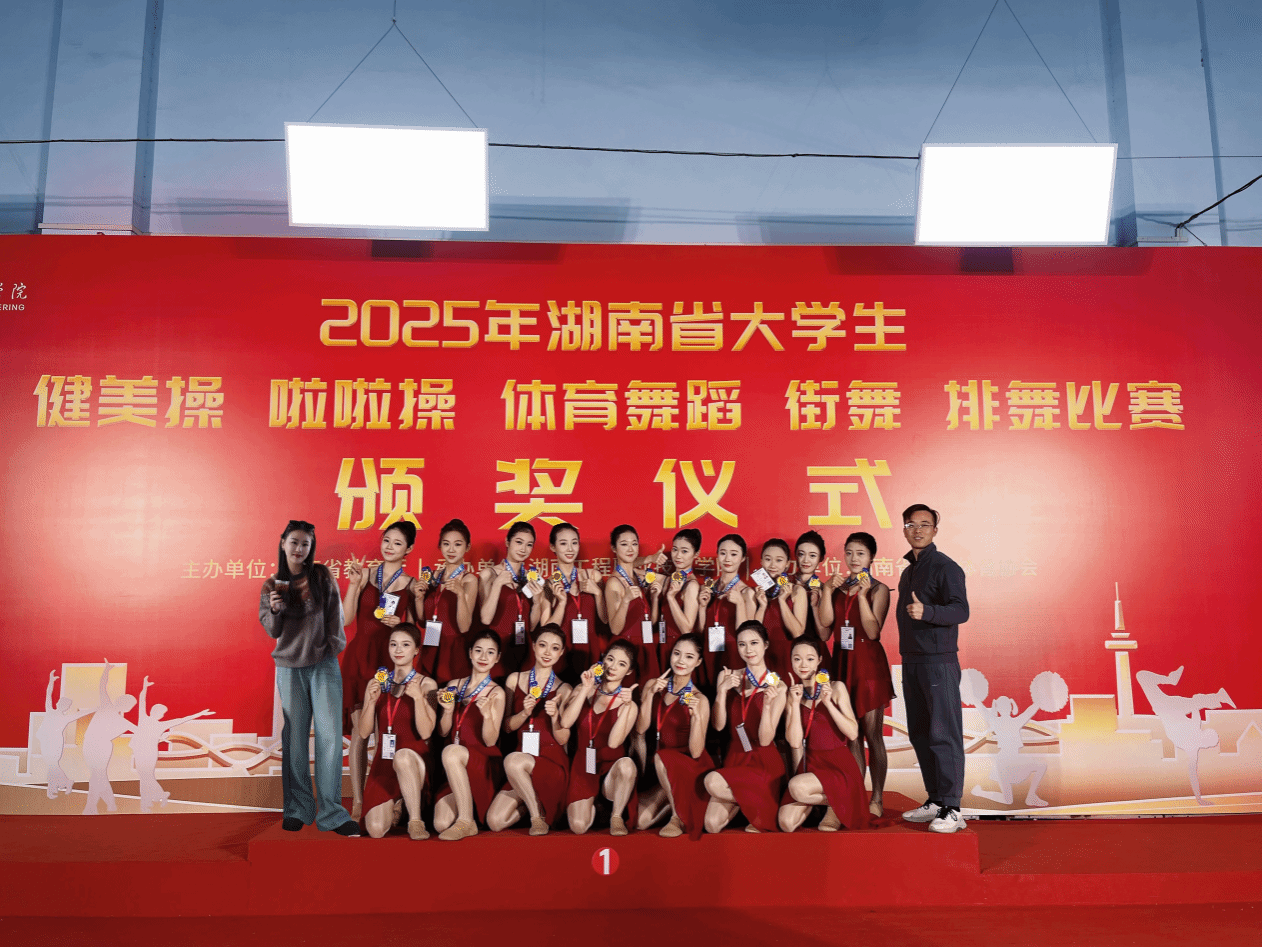近日,在刚刚落幕的2025年湖南省大学生啦啦操比赛中,贝博啦啦操队凭借出色的表现和极具感染力的舞台呈现,从众多高校代表队中脱颖而出,荣获自选集体爵士项目一等奖。