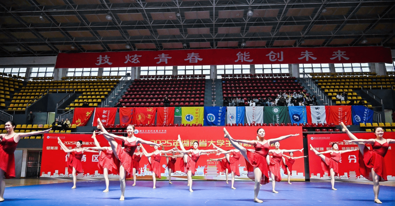 本次比赛由湖南省教育厅主办,湖南工程职业技术学院承办,湖南省学生体育协会协办,是湖南省高校啦啦操项目最高水平赛事,吸引了来自全省60余所高校的高水平队伍同台竞技。贝博啦啦操队在教练员唐太文、肖双婧、刘仲春的精心指导下,历经数月刻苦训练,从动作编排、音乐选配到整体表现力均精益求精。比赛中,队员们以整齐划一的动作、富有张力的节奏把控和青春洋溢的舞台感染力,展现了贝博学子昂扬向上的精神风貌与扎实的专业素养,赢得了评委和观众的一致好评。