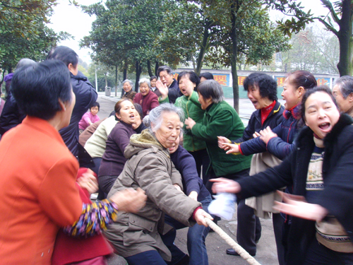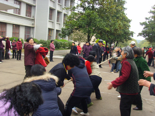 离退休女教职工举行拔河比赛