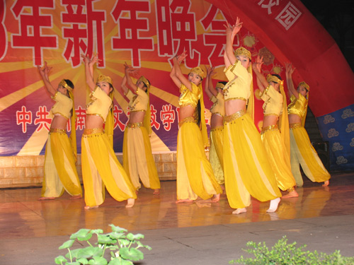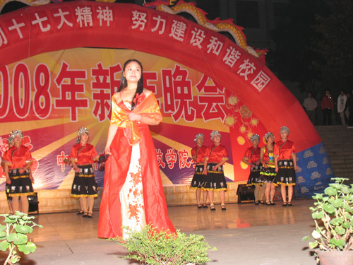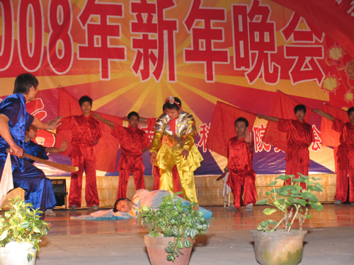 姜正国院长登台致辞,代表学院向全院师生致以新年的祝福。晚会节目丰富多彩,精彩纷呈。离退处老同志演唱的《四度赤水》等革命歌曲仿佛把人带回了遥远的战争岁月,体育系的舞蹈《舞动青春》欢快、跳跃,舞出了青春的激情,显示了当代大学生的风采,悠扬动听的吉他弹唱,声情并茂的诗歌朗诵,民族风情浓郁的男声二重唱,充满异域情调的印度舞蹈,无不令人目不暇接,流离忘返。最后体育系侠骨柔情、遒劲洒脱的武术《霸王别姬》把晚会气氛推入了高潮。经过激烈的角逐,离退处获得特别奖,体育系获得两个一等奖,图书馆等单位获得二等奖,经管系等单位获得三等奖,体育系还获得了组织奖。