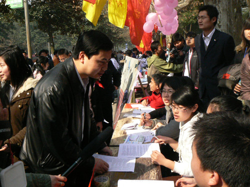 参加此次校外学雷锋活动的师生近千人,14个系部结合自身专业的特点,以实际行动弘扬了雷锋精神,彰显出了人文学子对社会高度的责任感和爱心。计算机系和通控系、物理系联系实际生活,为市民提供免费的家电与电脑维修,广受市民好评;经管系紧扣“绿色旅游与生态奥运”的主题,采用有奖竞答的形式,颇为生动别致;教育系与体育系分别向市民提供免费的心理测量咨询与免费体检,数学系与外语系则重点关心数学与英语的教育教学问题等等;而音乐系的文艺演出更是精彩纷呈,让人目不暇接。“建设资源节约型、环境友好型社会从我做起”大型签名活动引来了广大市民的热情参与,颜海林副书记饶有兴趣地参观了我院系部的各个展台,他对本次活动给予了相当高的评价。