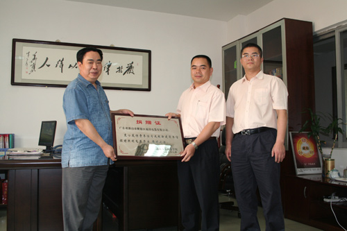 2008年8月3日至5日,党委书记黄懿斌,党委委员、两办主任李高海,校友办主任段健芝等一行四人专程去广东走访了数学84级校友李四清——现广东佛山市顺德区福田电器有限公司执行总经理,并为其公司捐赠贝博现新建图书馆所需开关之举赠发了捐赠证。