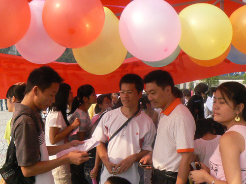 中秋的“海园广场”热闹非凡。经院团委、社团联合会近半个月的精心组织和策划,ballbet贝博bb艾弗森2008年社团招新大会于9月14日上午8:00在海园广场隆重举行,全院39个社团会聚海园广场,以各自的形式和特色开展了招新工作,整个海园广场呈现出“百花齐放”、“百家争鸣”的局面,让08级新生感受到了大学校园文化生活的多姿多彩。