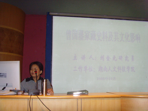 10月21日下午2:30—4:30,我院曾国藩研究所所长、刘金元研究员在多媒体报告厅为近200名师生作了题为《曾国藩家藏史料及其文化影响》的学术讲座,报告由湖南省曾国藩研究基地首席专家、我院刘铁铭教授主持。