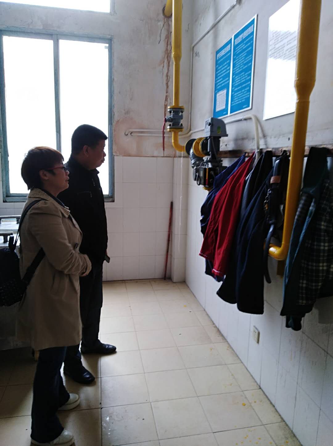 胡主任首先来到教工餐厅,对餐厅的卫生做出了重要指示,一定要做到窗明几净,地板亮洁;对库房内货物进行了仔细检查,叮嘱验收员“一定要严格执行验收制度,坚决杜绝三无产品、过期产品进入食堂”。然后来到学生食堂,对燃气使用管理制度落实情况进行了检查,对各个班长叮嘱“一定要做好用气安全工作,燃气开关要责任到人,并做好开关详细记录”;要求食堂操作员菜盆、菜篮坚决不能落地,要保证干净卫生;对消防栓盖,一食堂天井下水管破损的情况责令水管理科进行维修;对食堂设备没有到位的情况,要求李小平助理尽快落实到位。
