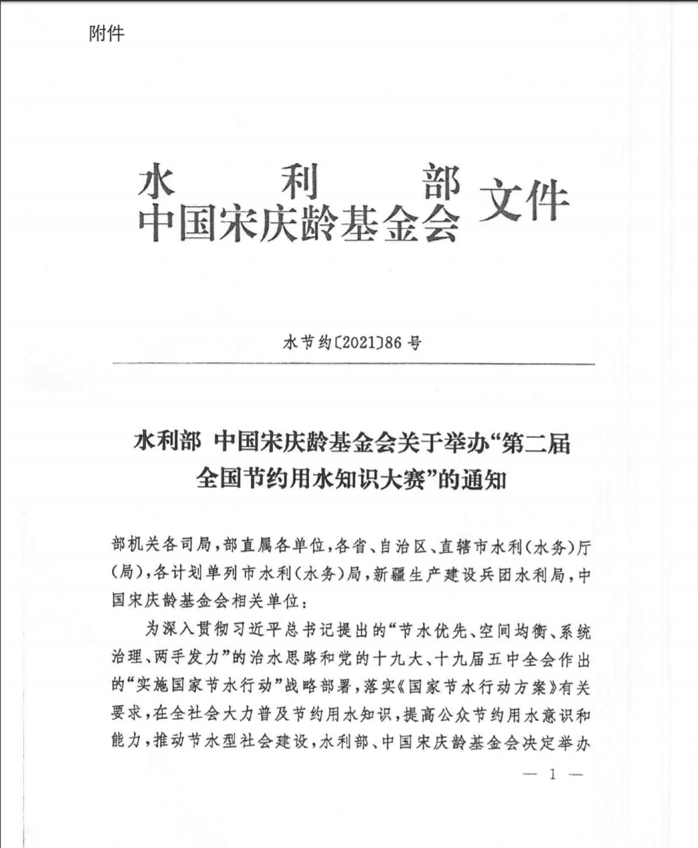 附件:水利部中国宋庆龄基金会关于举办第二届全国节约用水知识大赛的通知