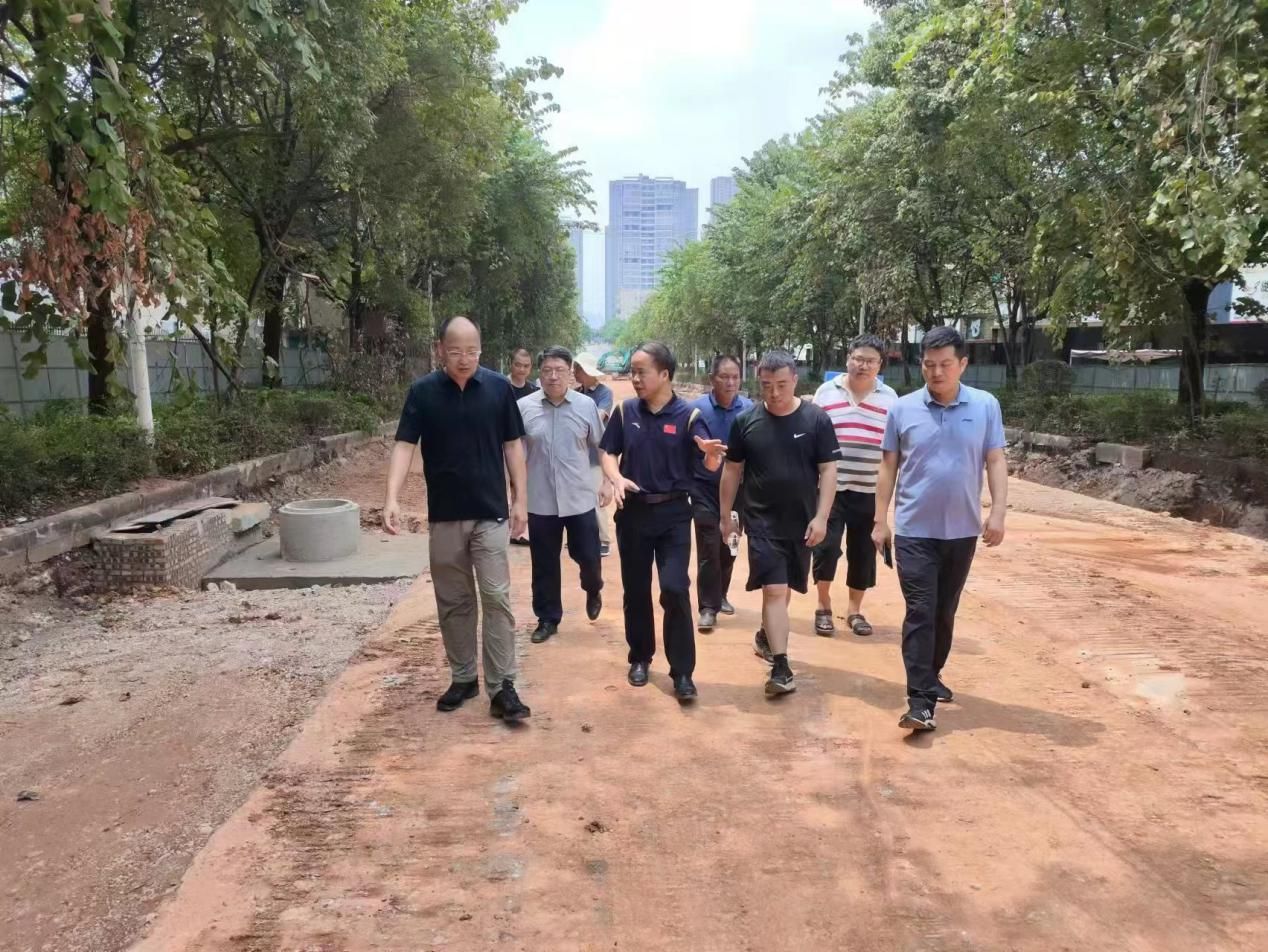 在学校学院路雨污分流工程施工现场,盛明科和吴润民详细了解工程进度,强调施工方要在保质量、保安全的前提下,加快工程进度,确保在开学前完成通车,并对其他相关工作进行了部署安排。