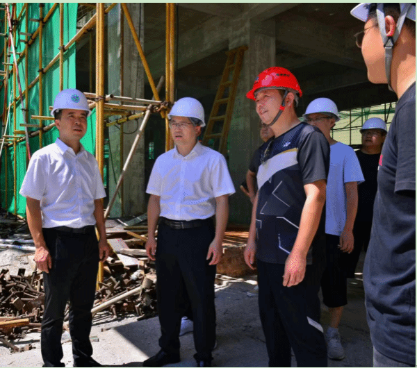 盛明科一行检查了学生宿舍5栋改造、阳光公寓7号楼建设、理工科实训楼建设等项目,认真听取了各个项目的建设进展情况汇报,给予了深入而全面的现场指导,并亲切慰问一线工作人员和建设人员,发放了藿香正气水、西瓜、矿泉水等防暑物资。在查看学生宿舍5栋改造和阳光公寓7号楼建设过程中,盛明科表示,一定要做好宿舍阳台及楼道的围栏高度设计和质量监督工作,确保学生生命安全;必须要做好室内通风工作,保证宿舍空气质量达标;务必要做好寝室和附属工程的卫生工作,力求营造出一个温馨如家的环境。