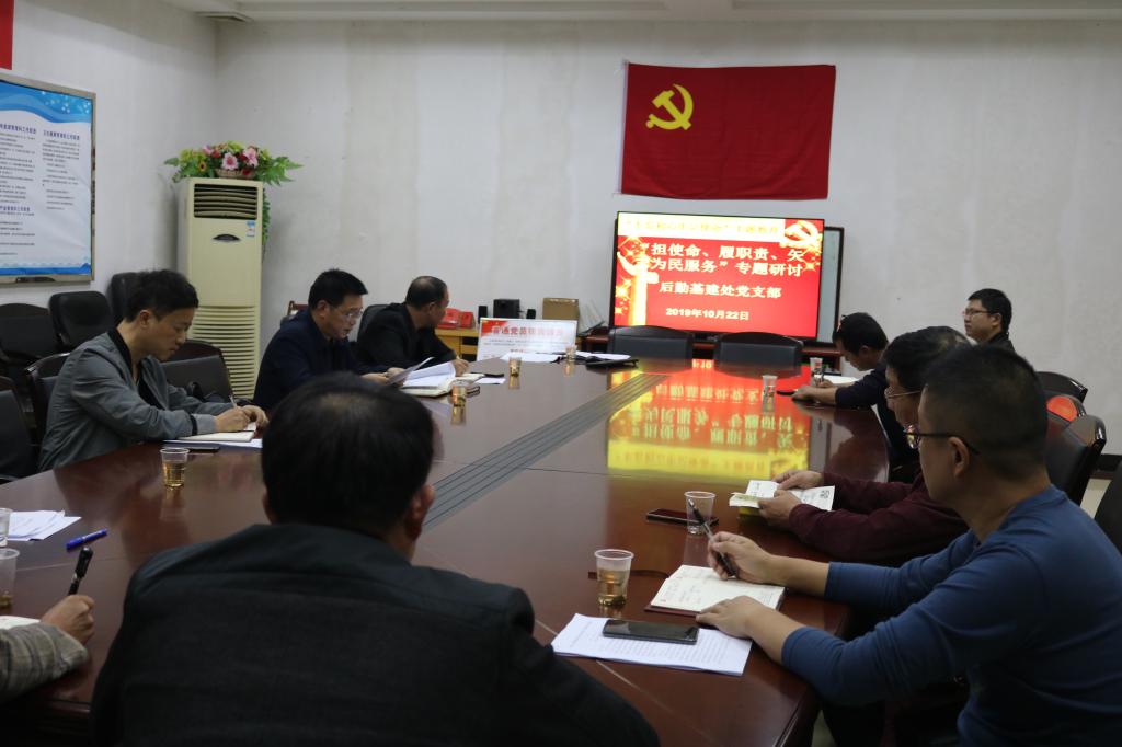 2019年10月22日下午,经过两天的集中学习和个人自学,后勤基建处党支部在淳和楼418会议室召开“不忘初心、牢记使命”主题教育第二专题研讨。