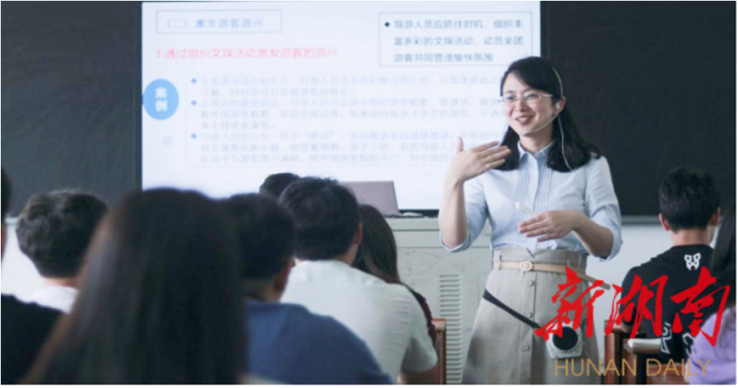 积极探索与创新实践育人的途径。为推动课堂教学革命、努力打造“金课”,加快推进一流课程建设,积极探索实践育人模式。王晶晶通过加强实践教学和尝试倡导建立实践基地来达到更好的育人功能。课程中增加了在任课教师指导下实践调研教学环节,成为课程考核的一部分。多次带领学生前往桂林、韶山、花明楼等开展课程实践教学活动。在《导游学》课程实践教学环节中,增加教师模拟导游讲解内容,寓教于学、寓教于乐,取得良好的效果。另外,建设校企合作课程2门,建设课程案例库1个,为学生打开了洞察行业实际的窗口。