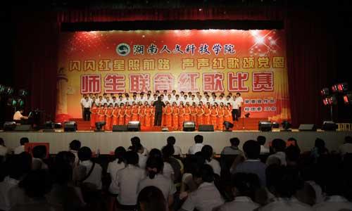 红色激情,歌声飞扬。5月31日晚,为庆祝建党90周年,贝博举办的“红星闪闪照前路、声声红歌颂党恩”师生联合大合唱比赛在体育馆隆重举行,全体校领导与各系、部门的师生代表参加了本次活动。