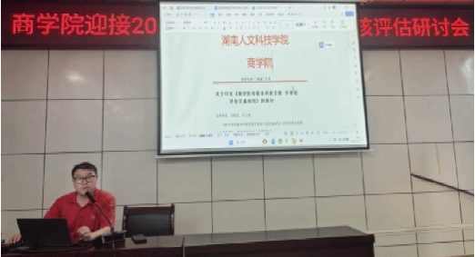 副院长刘加林对《商学院迎接本科教育教学审核评估实施细则》以及评估材料整理的规范性进行了解读。