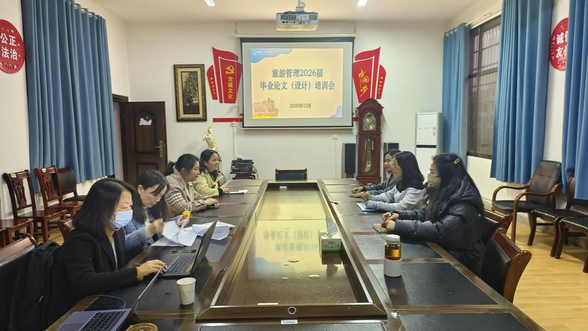 为进一步提升旅游管理专业毕业论文(设计)质量,强化学生理论与实践结合能力,培养符合行业需求的应用型人才,12月2日,旅游管理专业召开2026届毕业论文质量提升专题研讨会,围绕当前毕业论文存在的核心问题展开深入研讨,明确了质量提升的具体路径与实施计划。