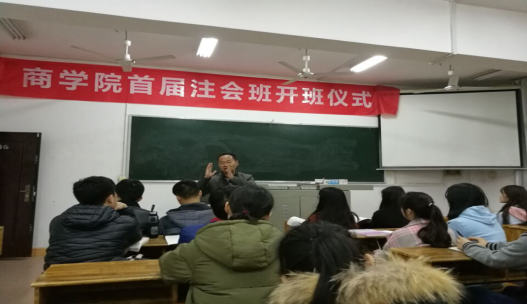 3月20日晚上7:00在同德楼406教室,正式拉开了商学院首届注会班帷幕,参会的老师有朱强院长、杨怀宏副院长、朱阳生教授、注会班任课老师以及注会班全体同学。此次开班仪式由杨怀宏副院长主持,分三个议程,首先由朱强院长发言,朱院长从为什么(开这个班)、(学生)需要什么、(学生)会什么、(学生)做什么这四方面对在座的同学进行了加油鼓劲。