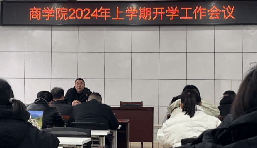 2月27日下午,商学院在高韵楼101召开2024年上学期开学工作会议。全院教职工参加,党总支书记刘辉主持。