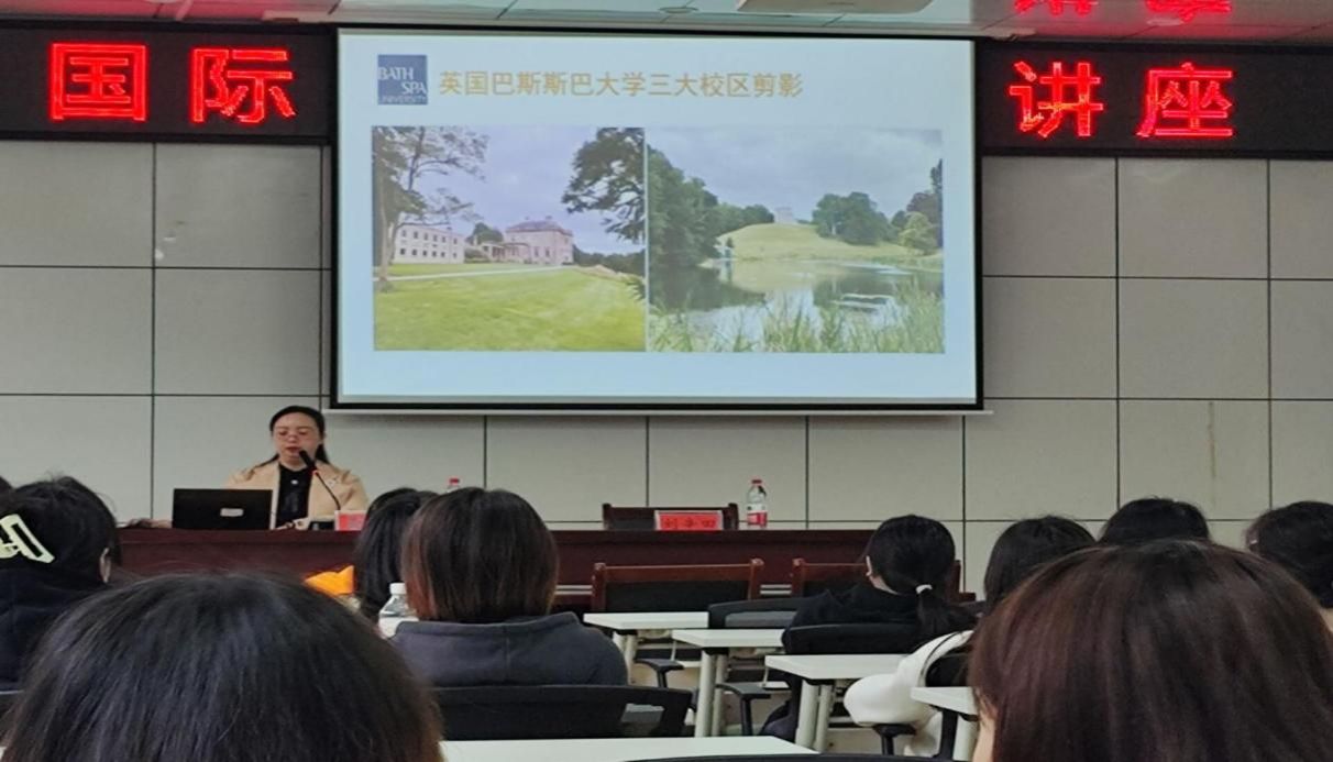 黄敏还重点介绍了英国巴斯斯巴大学与贝博长期合作情况。她通过视频和图片带领同学们走进英国巴斯斯巴大学,感受国外高校学习环境与氛围。师生互动环节,参会学生积极提问,探讨留学申请流程、留学后职业发展等热点话题,黄敏均提供了详细解答和实用建议。