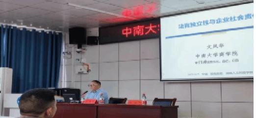 11月7日下午,中南大学商学院博士生导师文凤华教授应邀在高韵楼报告厅作题为“法官独立性与企业社会责任”的学术报告。报告会由数学与金融学院党总支书记陈国华教授主持,商学院在家院领导、数金院副院长龙志文、商学院全体教师,2023级农村发展领域硕士研究生参加。