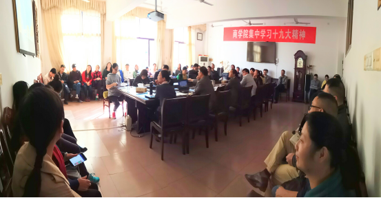 学习会上,商学院教职工集中学习了党从十八届一中全会到七中全会的工作重点以及习近平总书记十九大报告内容。
