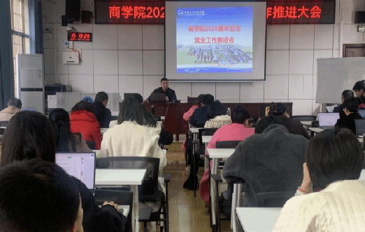 3月11日下午,商学院在高韵楼101召开2025届毕业生就业工作推进大会,商学院全体教职员工参加会议,党总支书记刘辉主持。