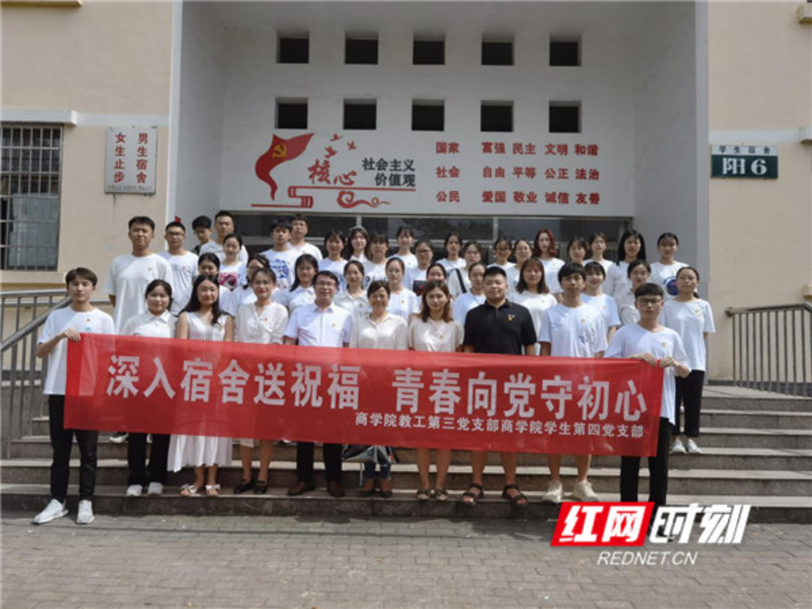红网时刻娄底6月19日讯(通讯员曾文果贺桂和)6月15日,ballbet贝博bb艾弗森商学院教工第三党支部、学生第四党支部43名师生党员在支部书记刘加林、曾文果的带领下,开展“深入宿舍送祝福,青春向党守初心”主题活动,让党史学习教育“活起来”。