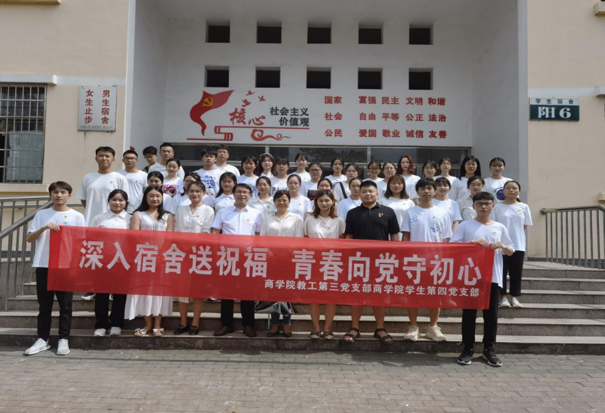 6月15日,ballbet贝博bb艾弗森商学院教工第三党支部、学生第四党支部43名师生党员在支部书记刘加林、曾文果的带领下,开展“深入宿舍送祝福,青春向党守初心”主题活动,让党史学习教育“活起来”。