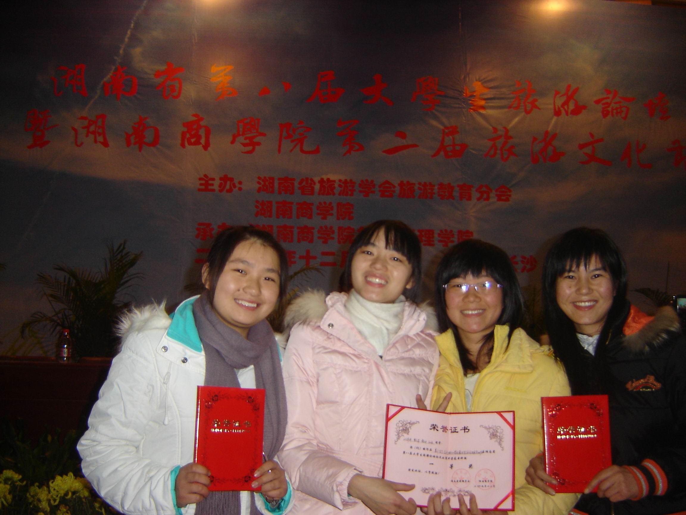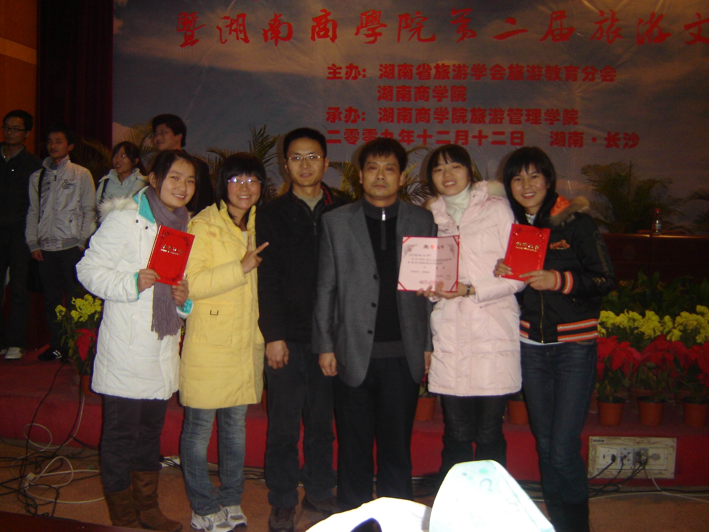 热烈祝贺我系旅游管理专业学生在12月12日的湖南省第八届大学生旅游论坛论文比赛中取得优异的成绩。此次比赛由湖南省旅游学会举办,湖南商学院承办,共有五十多所高校组队参赛。
